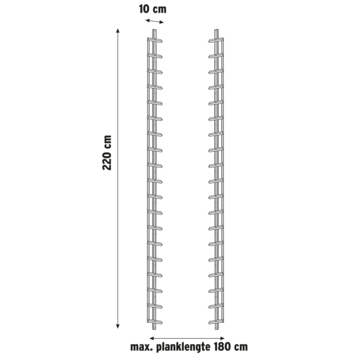 • Kan zowel horizontaal als verticaal gemonteerd worden met planken van max. 180 cm lang