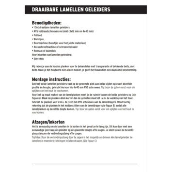Indien je een afwijkende afmeting hebt waar je de lamellen wilt plaatsen kun je de geleider gemakkelijk inkorten met een ijzerzaag.