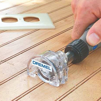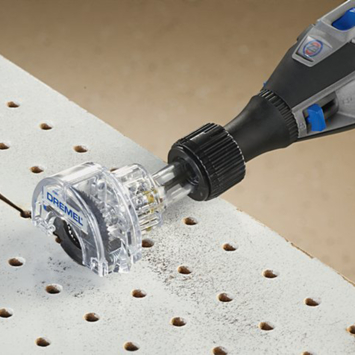 De Dremel mini-zaaghulpstuk verandert uw Dremel gereedschap in een precisie-cirkelzaag voor fijn, zuiver en recht zagen in alle soorten hout. De geleider maakt recht zagen mogelijk. De maximale werkdiepte is 6,4 millimeter. Dus uitermate geschikt voor het zagen op maat zagen van laminaat, houten vloerdelen of dunne houtplaten. De beschermkapjes zorgen voor een veilig gebruik van het cirkelzaagblad. Door de snelkoppeling bevestigt u het Dremel gereedschap in enkele tellen. De Dremel mini-zaaghulpstuk is eenvoudiger in gebruik dan een gewone zaag, preciezer dan een decoupeerzaag en past in kleinere hoekjes dan een cirkelzaag.