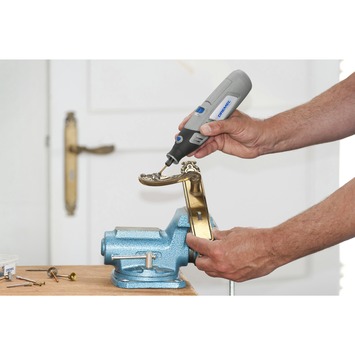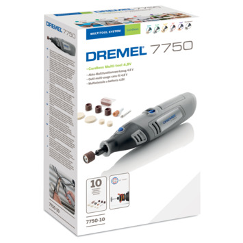 De Dremel multitool 7750JA is een lichte multitool op accu basis. De machine heeft een 4,4 volt accu die in 60 minuten opgeladen is. Doordat deze op accu werkt heb je geen last van snoeren en heb je meer bewegingsvrijheid. Hierdoor kun je al je klusjes nauwkeurig uitvoeren. Zelfs op moeilijk bereikbare plekken waar dit voorheen niet kon. De accessoires kun je eenvoudig zonder gereedschap wisselen. De Dremel multitool 7750JA wordt geleverd met 10 accessoires waardoor je gelijk aan de slag kunt.