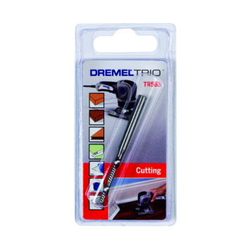Het Dremel TRIO freesmes, werkdiameter 3,2 millimeter, is een multifunctionele hardmetalen freesmes voor het snijden in hout, gipskarton, kunststof, glasvezel, laminaat en plaatmetaal. Hardmetalen accessoires gaan langer mee dan traditionele HSS accessoires. De TRIO-accessoires zijn uitsluitend voor gebruik met Dremel TRIO gereedschap.