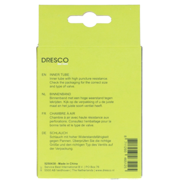 Dresco binnenband met een hoge weerstand tegen lekrijden. Geschikt voor onder