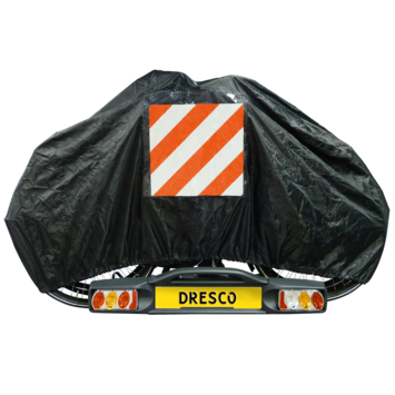 De Dresco fietshoes met insteekvak, geschikt voor 2 fietsen beschermt je fietsen tijdens het vervoeren op de fietsendrager. De hoes is gemaakt van stevig PVC en beschermt je fietsen tegen vuil, regen, ijs, sneeuw en stof. Dankzij de elastische zoom en bevestigingshaken kan je de hoes gemakkelijk over je fietsen bevestigen. Door het insteekvak kan er in de hoes een markeringsbord worden geplaatst voor extra veiligheid. De fietshoes is groot genoeg voor 2 fietsen. De hoes is 150 x 74 x 122 cm en heeft een zwarte kleur.