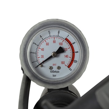 De vloerpomp kan pompen tot een druk van 11 Bar of 160 PSI. In het handvat