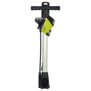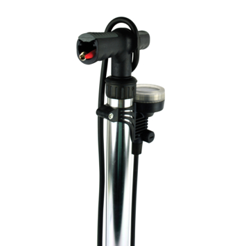 De Dresco fietspomp met manometer met opklapbare voetsteunen. De pompslang