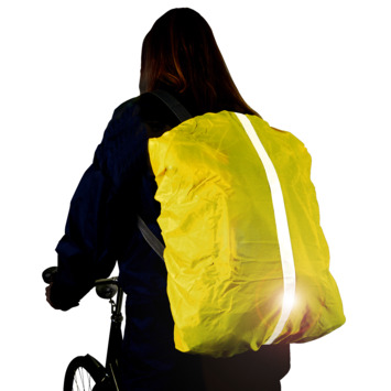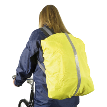 waterafstotende en reflecterende Dresco regenhoes. De regenhoes heeft een