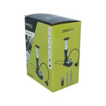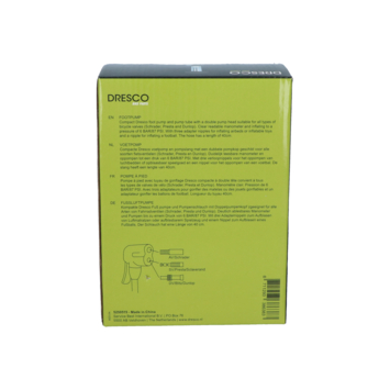 Compacte Dresco voetpomp en pompslang met een dubbele pompkop geschikt voor