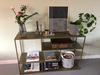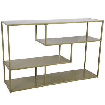 Dressoir/sidetable Noor is een functioneel en modern meubel, gemaakt van metaal met een goude coating. Het meubel bestaat uit meerdere vakken met gouden planken. De dressoir/sidetable heeft een strak uiterlijk dat past in veel verschillende stijlen en ruimtes in het huis. Dressoir/sidetable Noor is in te delen zoals je zelf wilt, met bijvoorbeeld verschillende fotolijsten, planten, boeken of diverse woonaccessoires. Dressoir Noor is ook verkrijgbaar in een vakkenkast van 85 of 120 centimeter breed.