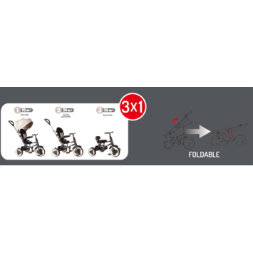 De QPlay Rito Driewieler Deluxe is een luxe driewieler, geschikt voor kindjes van 10 tot en met 36 maanden. De driewieler is volledig inklapbaar en voorzien van een verstelbare, telescopische duwstang waarmee u uw kindje gemakkelijk kunt begeleiden. Voor de veiligheid van uw kindje heeft de driewieler veiligheidsriempjes en een veiligheidsbeugel. Om comfort te verzekeren heeft de driewieler een zitkussen en een verstelbare rugleuning. Verder beschikt de driewieler over een 10 inch wiel voor met vrijloop en twee 8 inch wielen achter met blokkering, een stuur voor waarmee uw kindje zelf de richting kan bepalen, trappers met anti-slip laag zodat de voetjes niet wegglijden, inklapbare voetsteun, een mandje achter en een inklapbare en afneembare kap die uw kindje zowel tegen de zon als regen kan beschermen. Een driewieler van goede kwaliteit, waar zowel u als uw kindje veel plezier mee kunnen beleven op wandeltochtjes!