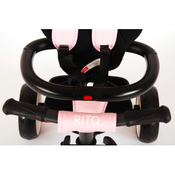 De QPlay Rito Driewieler Deluxe is een luxe driewieler, geschikt voor kindjes van 10 tot en met 36 maanden. De driewieler is volledig inklapbaar en voorzien van een verstelbare, telescopische duwstang waarmee u uw kindje gemakkelijk kunt begeleiden. Voor de veiligheid van uw kindje heeft de driewieler veiligheidsriempjes en een veiligheidsbeugel. Om comfort te verzekeren heeft de driewieler een zitkussen en een verstelbare rugleuning. Verder beschikt de driewieler over een 10 inch wiel voor met vrijloop en twee 8 inch wielen achter met blokkering, een stuur voor waarmee uw kindje zelf de richting kan bepalen, trappers met anti-slip laag zodat de voetjes niet wegglijden, inklapbare voetsteun, een mandje achter en een inklapbare en afneembare kap die uw kindje zowel tegen de zon als regen kan beschermen. Een driewieler van goede kwaliteit, waar zowel u als uw kindje veel plezier mee kunnen beleven op wandeltochtjes!
