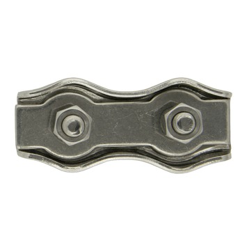 De dubbele staaldraadklem 8 mm is een dubbele staaldraadklem geschikt voor een staaldraadkabel met een diameter van 8 millimeter. De staaldraadklem is gemaakt van het hoogwaardige roestvast staal 316 en is daardoor goed bestand tegen zowel zoet als zout water. De staaldraadklem wordt gebruikt voor het maken en vastzetten van een lus in een staaldraadkabel.