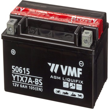 De VMF accu Powersport YTX7A-BS voor motor en scooter is een robuuste accu. Dankzij de sterke behuizing kan de accu goed tegen trillingen. Ideaal als je vaak met de motor of scooter offroad gaat rijden. De accu is erg betrouwbaar en door de goede toevoer van energie zal de motor in alle soorten weersomstandigheden starten. Met de meegeleverde electrolyte wordt de accu onderhoudsvrij. De VMF accu kan zonder problemen worden bevestigd op een montagehoek van maximaal 45 graden, zonder dat die accu zal gaan lekken.
