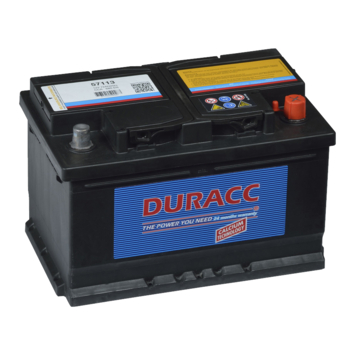 De Duracc startaccu 71ah 12V is een 12volt accu met een gesloten onderhoudsvrij systeem. Hij kent een minimale ontlading. De accu heeft een capaciteit van 71 ampère. Hij is ook verkrijgbaar voor gebruik in scooter of motor.