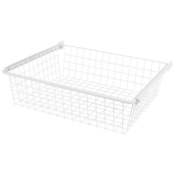 Deze Duraline draadmand wit is gemaakt van wit gepoedercoat staal en heeft een afmeting van (lxbxh:) 56,9x46x15 cm. Deze mand is onderdeel van het multifunctionele Duraline opbergsysteem. Deze draadmand bevestig je eenvoudig d.m.v. de meegeleverde geleiders.