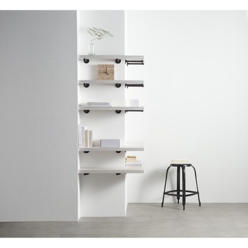 Deze Duraline industriële plankdrager pipe messing heeft een stoere robuuste uitstraling en is goed om te combineren met een grove stoere plank. Deze plankdragers worden als set van 2 stuks verkocht.