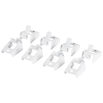 De Duraline montageclips wit 8 stuks zijn onderdeel van het ruime assortiment Duraline vrijstaand en hangend opbergsysteem. Deze clips heb je nodig om de bijbehorende Duraline planken, draadplanken en het wijnrek van het Duraline te bevestigen in het rek. In de verpakking zitten 8 schroefjes om de montageclips aan de houten planken te bevestigen.