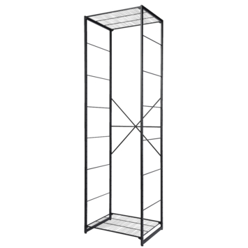 Dit trendy, open opbergrek is in zwart en wit verkrijgbaar en kan op verschillende manieren worden gebruikt. Gebruik 'm bijvoorbeeld als kapstok in je hal, als boekenrek in je werk- of studeerkamer of als opbergrek voor je boodschappen in je bijkeuken of garage. Er zijn oneindig veel mogelijkheden om jouw gewenste rek te maken door het ruime aanbod aan onderdelen, als roedes, wijnrekjes, schoenenrekjes, manden en stalen of houten planken. Naast dat dit opbergrek niet alleen enorm handig is, heeft het opbergrek ook nog eens een moderne en strakke uitstraling.