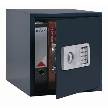 Deze Duralock inbraakwerende kluis S38E is een erg veilige kluis die voorzien is van een codeslot. Een noodsleutel is meegeleverd, wel zo handig als je per abuis de code bent vergeten. De buitenmaat van de kluis is 38x33x39 cm (hxbxd) en de binnenmaat is 37,5x32,5x34,5 cm (hxbxd). Door deze maatvoering kunnen ook standaard ordners veilig worden opgeborgen. De kluis is voorzien van verankeringsgaten en het hiervoor benodigde bevestigingsmateriaal is meegeleverd. De wanddikte van deze inbraakwerende kluis is 1,5 mm en de wanddikte van de deur is 3 mm. Het gewicht is ca. 10,5 kg. De benodigde batterijen (4x AA) zijn niet meegeleverd. Kortom deze kluis is ideaal voor het veilig bewaren van bijvoorbeeld persoonlijke bezittingen of documenten.