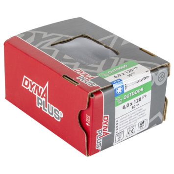 Zoek je een multifunctionele schroef met een torx-aandrijving voor gebruik buitenshuis? Ga dan voor deze Dynaplus Schroef Universeel Platkop AR coating TX-30 6.0X120/70 50 Stuks. De universeelschroef, ook wel spaanplaatschroef genoemd, is veruit de meestgebruikte schroef voor hout en plaatmateriaal. Deze schroef is afgewerkt met een platkop, wat inhoudt dat hij een taps toelopend gedeelte onder de kop heeft die mooi in het materiaal wegzakt. Deze Dynaplus-schroef is gemaakt van gehard carbonstaal met daaroverheen een gepatenteerde Anti-Roest-coating, waardoor de schroef maar liefst 2x zo sterk is als roestvaststalen schroeven. De schroef heeft een zespuntige torxkop van het type T20. Je kunt hem dus met een torx-bitje of schroevendraaier indraaien, die bekend staan om hun goede grip en lage indraaiweerstand. Voor extra schroefgemak is deze Dynaplus-schroef voorzien van een extra waxlaag en heeft hij een speciale 'cross-section' aan de punt, dat splijten van hout tijdens het inschroeven voorkomt. Dit product is bedoeld voor gebruik buitenshuis en wordt verkocht per 50 stuks, dus je hebt altijd een schroef achter de hand. Kortom: optimaal schroefgemak buitenshuis met deze universele schroef van Dynaplus.