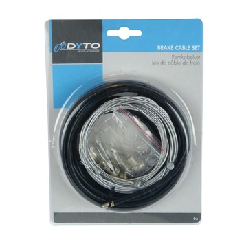 De Dyto remkabelset universeel bestaat uit kabels voor de voor(knijp)- en achter(trommel)remmen. De remkabelset is een complete set met alle benodigdheden om een fiets van nieuwe remkabels te voorzien. De Dyto remkabelset universeel kan gebruikt worden op de normale fiets, Mountainbike en racefiets. Het is een universele set, dus er kunnen sommige onderdelen ongebruikt blijven.