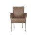 Een moderne strakke echt lederen eetkamerstoel Breeze met dichte armleuningen. De stoel Breeze heeft metalen poten die voorzien zijn van transparante en parket/laminaatvriendelijke kunststof wielen. De stoel Breeze is bekleed met oersterk taupekleurig geborsteld pilotenleder (rundsleder) dat iets ruw aanvoelt. Het taupekleurige leder in combinatie met de slanke RVS metalen buispoten met transparante wieltjes maken van deze stoel een blikvanger in elk interieur. De eetkamerstoel Breeze heeft de afmetingen (bxdxh): 59x60x90,5 cm. De armleuninghoogte van af de vloer is 67,5 cm. De zitdiepte is 44 cm en de zitbreedte, verloopt van voor naar achter, van 45 cm naar 35 cm. De zithoogte, verloopt van voor naar achter,van 48 cm naar 44 cm en de rughoogte is 48 cm. Een eetkamerstoel van hoge kwaliteit met een heerlijk zitcomfort. Een stoel waarop lekker lang tafelen een genot is.