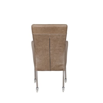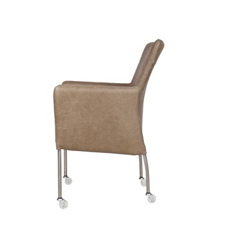 Eetkamerstoel Breeze leder taupe met metalen poten RVS en wielen