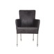 Een moderne strakke echt lederen eetkamerstoel Breeze met dichte armleuningen. De stoel Breeze heeft metalen poten die voorzien zijn van transparante en parket/laminaatvriendelijke kunststof wielen. De stoel Breeze is bekleed met oersterk zwart geborsteld pilotenleder (rundsleder) dat iets ruw aanvoelt. Het zwarte leder in combinatie met de slanke RVS metalen buispoten met transparante wieltjes maken van deze stoel een blikvanger in elk interieur. De eetkamerstoel Breeze heeft de afmetingen (bxdxh): 59x60x90,5 cm. De armleuninghoogte van af de vloer is 67,5 cm. De zitdiepte is 44 cm en de zitbreedte, verloopt van voor naar achter, van 45 cm naar 35 cm. De zithoogte, verloopt van voor naar achter,van 48 cm naar 44 cm en de rughoogte is 48 cm. Een eetkamerstoel van hoge kwaliteit met een heerlijk zitcomfort. Een stoel waarop lekker lang tafelen een genot is.