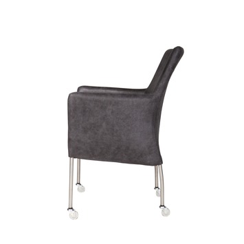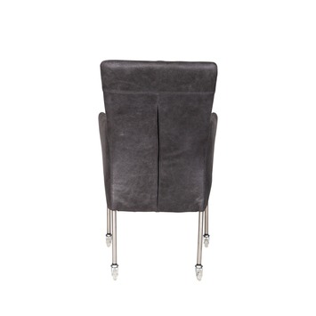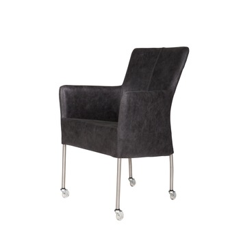 Eetkamerstoel Breeze leder zwart met metalen poten RVS en wielen