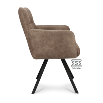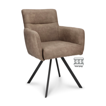 Net als de populaire Kane armstoel biedt ook de Dane Cowboy een verrassend hoog comfort. De zitting is voorzien van een ingebouwde pocketvering, wat zorgt voor een prettige en veerkrachtige ondersteuning. Ideaal voor lange avonden tafelen of ontspannen gesprekken aan de eettafel. De armleuningen maken de zitervaring compleet.