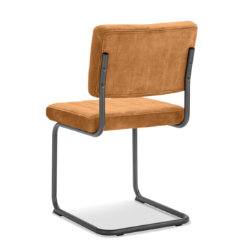 De eetkamerstoel Lynn Adore cognac stof brengt retro charme en moderne elegantie samen in één stijlvol ontwerp. De warme cognackleurige bekleding in zachte stof geeft de stoel een rijke, uitnodigende uitstraling. De verticale stiknaden in de rugleuning zorgen voor een subtiel detail dat het retro karakter versterkt en de stoel een verfijnde look geeft.
