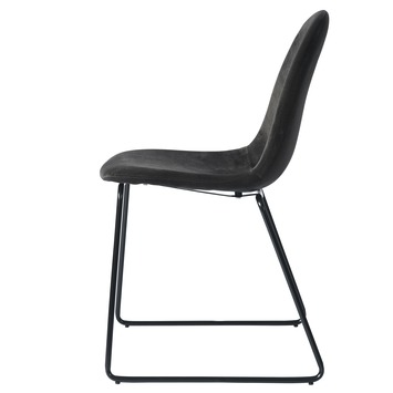 Eetkamerstoel Mila is gestoffeerd in een zwarte fluweel polyester stoffering met een zwart metaal onderstel. De stoel heeft een luxe uitstraling en staat leuk in meerdere ruimtes in het huis. De stoel heeft een kuipvormige zitting die heerlijk zit. Eetkamerstoel Mila is leuk te combineren met andere stoelen.