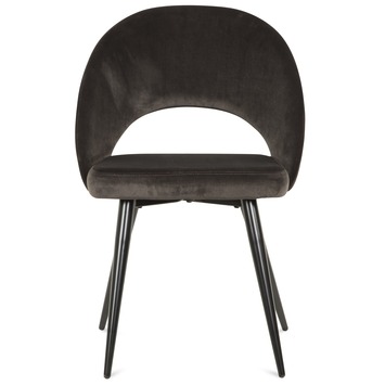 Eetkamerstoel Novi is een elegante en moderne stoel voor aan de eettafel. De stoel is bekleed met een fluweel polyester stof en is afgewerkt met zwarte poten. De stoel heeft een comfortabele zit en past thuis in ieder interieur. Eetkamerstoel Novi is verkrijgbaar in de kleuren roze, cognac goud, burgundy en antraciet.