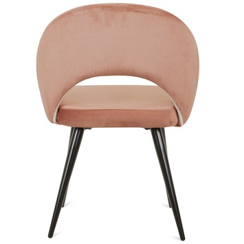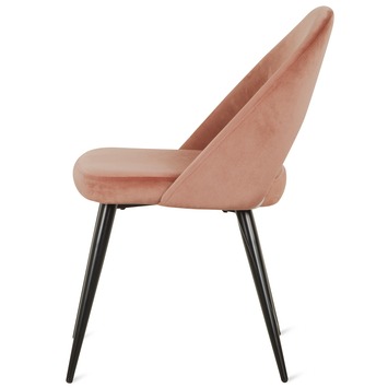 Eetkamerstoel Novi is een elegante en moderne stoel voor aan de eettafel. De stoel is bekleed met een fluweel polyester stof en is afgewerkt met zwarte poten. De stoel heeft een comfortabele zit en past thuis in ieder interieur. Eetkamerstoel Novi is verkrijgbaar in de kleuren roze, cognac goud, burgundy en antraciet.