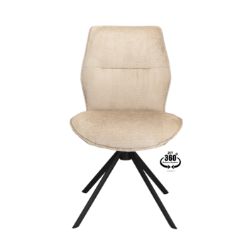 De stoel is voorzien van een 360 graden draaibare zitting, waardoor je moeiteloos meedraait met elk gesprek aan tafel. Dankzij het ingebouwde terugdraaisysteem keert de stoel na gebruik automatisch terug naar de beginpositie – netjes, praktisch en ideaal voor een opgeruimde uitstraling.