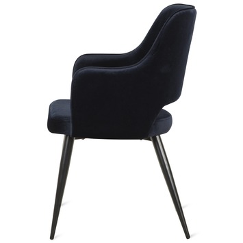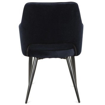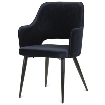 Eetkamerstoel Puck een leuke en tijdloze stoel voor aan de eettafel. De stoel is bekleed met is een polyester stof met fluweel look en is afgewerkt met zwarte poten. Eetkamerstoel Puck is verkrijgbaar in de kleuren antraciet, blad groen en donkerblauw.