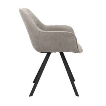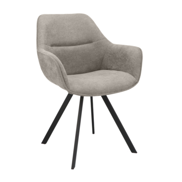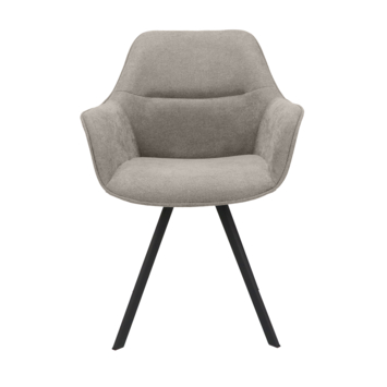 De eetkamerstoel Roos gemêleerd bruin Bloq stof met armleuning is een elegante en praktische stoel die jouw eetkamer direct een stijlvolle upgrade geeft. De stoel is bekleed met de luxe Bloq-stof in een gemêleerde bruine tint, wat zorgt voor een warme en eigentijdse uitstraling. Het stevige onderstel van zwart gepoedercoat metaal geeft de stoel een modern accent en maakt hem eenvoudig te combineren met diverse interieurstijlen.