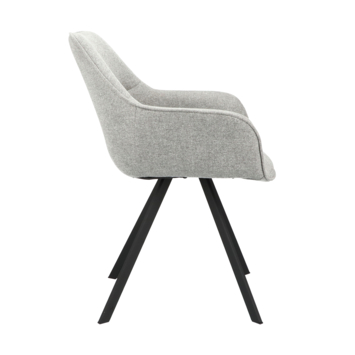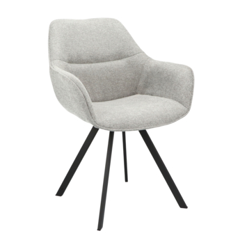 De eetkamerstoel Roos lichtgrijs Bloq stof met armleuning is een stijlvolle en comfortabele stoel die jouw eetruimte een moderne uitstraling geeft. De stoel is bekleed met de luxe Bloq-stof in een frisse lichtgrijze tint, wat zorgt voor een eigentijdse en veelzijdige look. Het stevige onderstel van zwart gepoedercoat metaal maakt het geheel af en geeft de stoel een stoere en industriële touch, waardoor hij perfect aansluit bij uiteenlopende interieurstijlen.