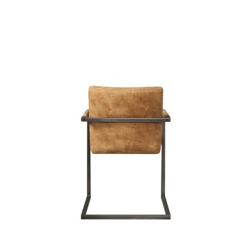 Eetkamerstoel Ruben is een stoere lederen stoel met een industrieel vierkant metalen buisframe en grove lasnaden. De lederen zitting en rugleuning krijgen met hun horizontale stiksel een robuuste uitstraling. De stoel Ruben is bekleed met oersterk cognac kleurig glad leder (rundsleder). Het cognac kleurige leder in combinatie met het robuuste vierkant metalen buisframe maken van deze stoel een opvallende verschijning in elk interieur. De Ruben eetkamerstoel vormt een perfecte combinatie met de stoere teakhouten eettafel Karlijn, de eettafels Jamie of Olivier met metalen frame en massief eiken tafelblad. Een eetkamerstoel van hoge kwaliteit met een heerlijk zitcomfort. Een stoel waarop lekker lang tafelen een genot is. Deze lederen stoel is ook verkrijgbaar in de kleur taupe of zwart.