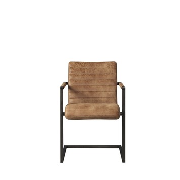 Eetkamerstoel Ruben is een stoere lederen stoel met een industrieel vierkant metalen buisframe en grove lasnaden. De lederen zitting en rugleuning krijgen met hun horizontale stiksel een robuuste uitstraling. De stoel Ruben is bekleed met oersterk taupe kleurig glad leder (rundsleder). Het taupe kleurige leder in combinatie met het robuuste vierkant metalen buisframe maken van deze stoel een opvallende verschijning in elk interieur. De Ruben eetkamerstoel vormt een perfecte combinatie met de stoere teakhouten eettafel Karlijn, de eettafels Jamie of Olivier met metalen frame en massief eiken tafelblad. Een eetkamerstoel van hoge kwaliteit met een heerlijk zitcomfort. Een stoel waarop lekker lang tafelen een genot is. Deze lederen stoel is ook verkrijgbaar in de kleur cognac of zwart.