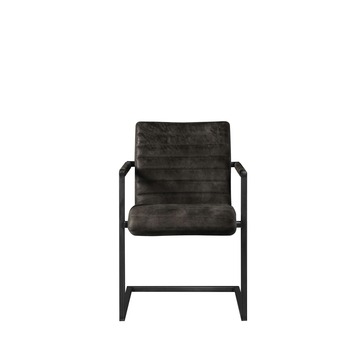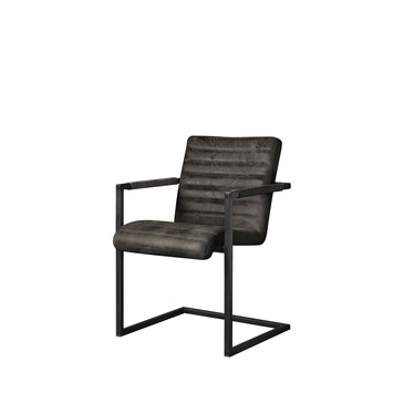Eetkamerstoel Ruben is een lederen stoel met een industrieel vierkant metalen buisframe en grove lasnaden. De lederen zitting en rugleuning krijgen met hun horizontale stiksel een robuuste uitstraling. De stoel Ruben is bekleed met oersterk zwart glad leder (rundsleder). Het zwarte leder in combinatie met het robuuste vierkant metalen buisframe maken van deze stoel een opvallende verschijning in elk interieur. De Ruben eetkamerstoel vormt een perfecte combinatie met de stoere teakhouten eettafel Karlijn, de eettafels Jamie of Olivier met metalen frame en massief eiken tafelblad. Een eetkamerstoel van hoge kwaliteit met een heerlijk zitcomfort. Een stoel waarop lekker lang tafelen een genot is. Deze lederen stoel is ook verkrijgbaar in de kleur cognac of taupe.