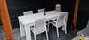 Het blad en onderstel zijn volledig vervaardigd uit wit steigerhout, wat zorgt voor een stevige en authentieke uitstraling. Dankzij de neutrale witte kleur past de tafel moeiteloos bij diverse tuin- en terrasstijlen, van modern tot landelijk.