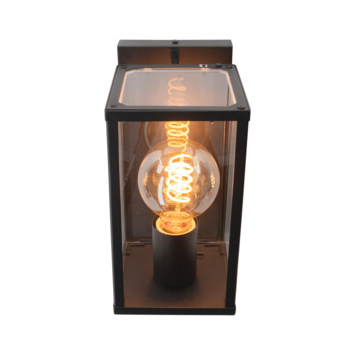 Buitenwandlamp BUDRONE is gemaakt van een zwarte metalen behuizing en heldere glazen panelen, die een direct zicht op de lamp binnenin mogelijk maken. De behuizing is gecombineerd met een zwart metalen muurplaat. De oriëntatie van de wandlamp kan vrij worden gekozen, zodat de verlichting naar boven of naar beneden schijnt. Dankzij de spatwaterbescherming (IP44) is de buitenlamp geschikt voor gebruik buitenshuis en rondt ze moderne buitenruimtes perfect af. De afgebeelde lichtbron is niet inbegrepen. De sensorlamp is geschikt voor elke lichtbron met E27 fitting.