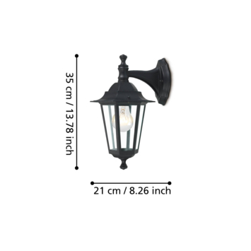 De Eglo buitenlamp Laterna zwart hangend is een klassieke buitenlamp en een sfeervolle toevoeging voor de tuin. Deze tuinlantaarn is gemaakt van zwart gelakt aluminium en transparant glas waardoor je de verlichtingsbron goed kan zien. Combineer deze wandlamp met bijvoorbeeld een sfeervolle LED-lichtbron met een filament draad voor een prachtig vintage effect.