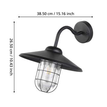 De Eglo buitenlamp Melgoa zwart is een stijlvol armatuur geschikt voor buitengebruik. De lamp is gemaakt van verzinkt staal en heeft een glazen kap, en is geschikt voor een lamp met een grote fitting (E27)Met IP beschermingsklasse IP44 is de lamp spatwaterdicht. De Milton is geschikt voor een lichtbron met een E27 fitting en een maximaal wattage van 60 watt.