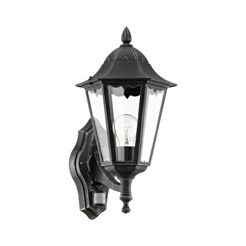 De Eglo buitenlamp Navedo zwart/zilver met bewegingssensor is een klassieke buitenlamp en een sfeervolle toevoeging voor de tuin. Deze tuinlantaarn is gemaakt aluminium en transparant glas waardoor je de verlichtingsbron goed kan zien. Het aluminium is zwart gelakt en heeft een zilver patina effect. Combineer deze wandlamp met bijvoorbeeld een sfeervolle LED-lichtbron met een filament draad voor een prachtig vintage effect.