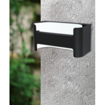 De LED-buitenwandlamp PASSIRANO bestaat uit een zwart gegoten aluminium behuizing met een witte binnenkant. De in de voorkant van de aluminium behuizing geïntegreerde LEDs stralen een aangenaam warm wit licht uit tegen de witte binnenkant van de armatuur. De wandlamp is spatwaterdicht (IP44) en kan zonder zorgen buiten worden gebruikt. Met zijn moderne ontwerp past hij in bijna elke buitenruimte en zorgt hij voor stijlvolle, indirecte verlichting op de huismuur.