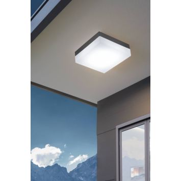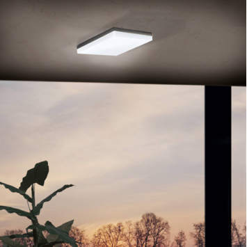 De SONELLA LED-buitenplafondlamp bestaat uit een vierkante antracietkleurige kunststof behuizing met een witte kunststof kap. De armatuur is spatwaterdicht (IP44) en kan dus zonder problemen buiten worden gebruikt. De geïntegreerde LED's geven een aangenaam warm wit licht. De buitenplafondlamp kan ook probleemloos als wandlamp worden gebruikt. Dankzij het eenvoudige ontwerp past het in alle moderne buitenruimtes, of het nu op het terras, balkon of bij de ingang van het huis is.