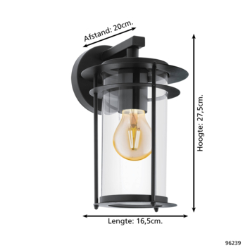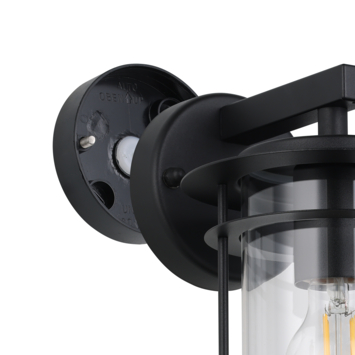 De VALDEO buitenwandlamp bestaat uit een zwarte gegalvaniseerde metalen behuizing gecombineerd met een transparante glazen cilinder. Deze cilinder maakt het mogelijk de bol direct te zien. De buitenlamp is spatwaterdicht (IP44) en kan dus zonder problemen buiten worden gebruikt. De moderne stijl is een aanvulling op je buitenruimte. De afgebeelde lichtbron is niet inbegrepen. De buitenlamp is compatibel met elke E27 lamp.