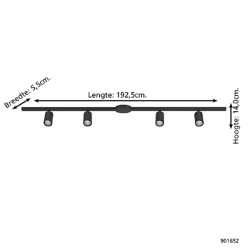 Dankzij de gerichte spots maak je eenvoudig eigen lichtzones, bijvoorbeeld boven een werkblad, zithoek of eettafel. De rail en spots zijn uitgevoerd in zwart aluminium en kunststof met een zwarte kap, waardoor de set een moderne uitstraling heeft die goed past in diverse interieurstijlen.
