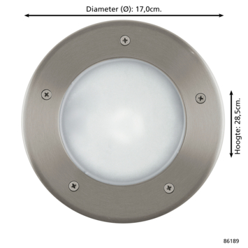 De EGLO grondinbouwspot Riga 3 voor buiten is 28,7 cm. Deze lamp is gemaakt van staal en kunststof en is afgewerkt in de kleur grijs.